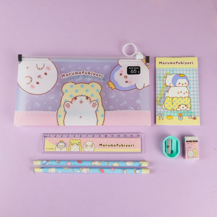 شامل دو مداد، یک پاک کن، مداد تراش، خط کش و دفترچه