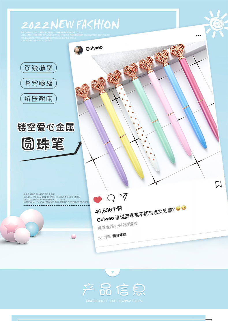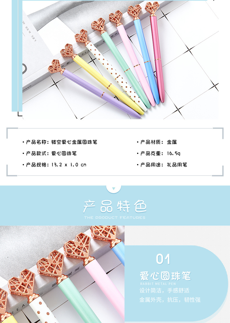 خودکار قلب طلایی فلزی