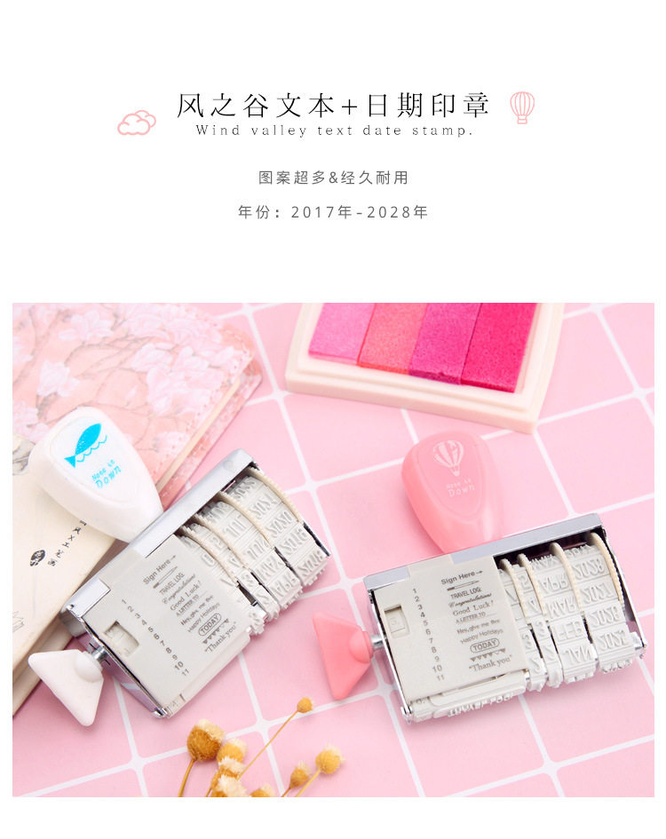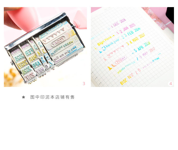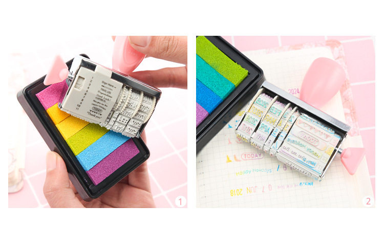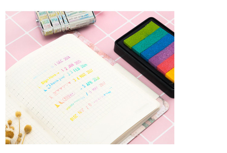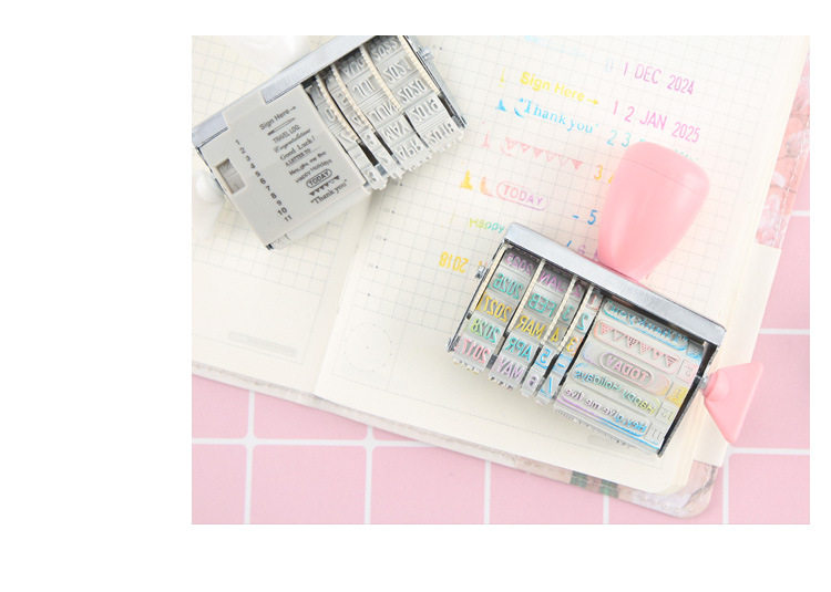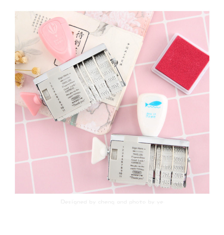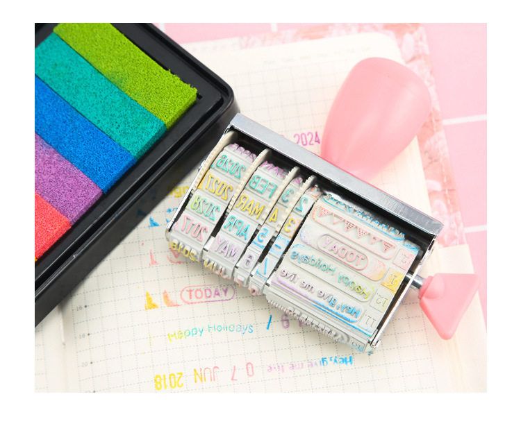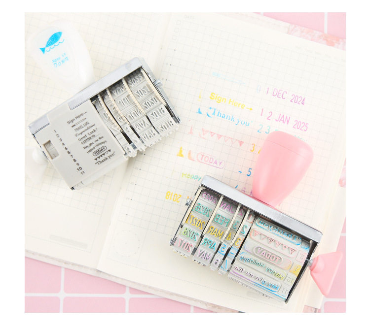یه مهر بامزه با متن و شکلک های آماده که برای هر مناسبتی با تاریخ میلادی مربوطه (از 2021 تا 2032) می تونید تنظیمش کنید و با استامپ های رنگی رنگی، شاهکار هنری خودتونو بسازید.