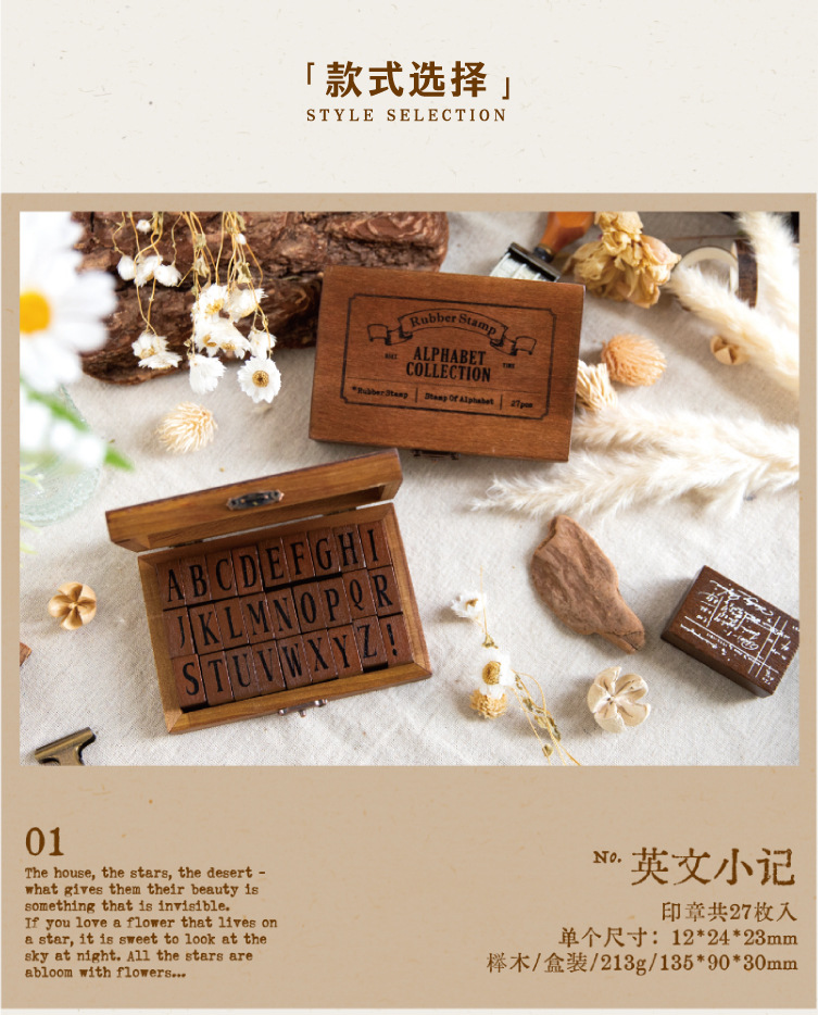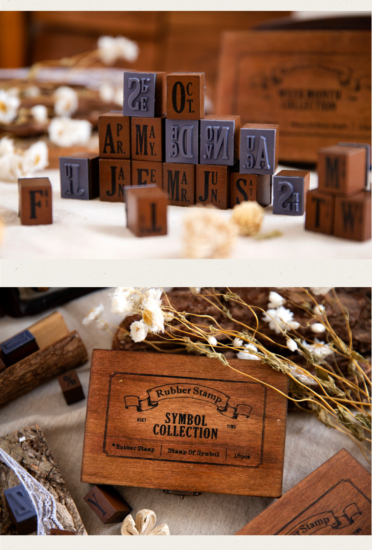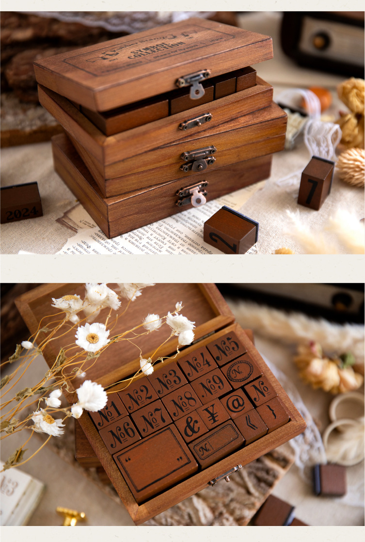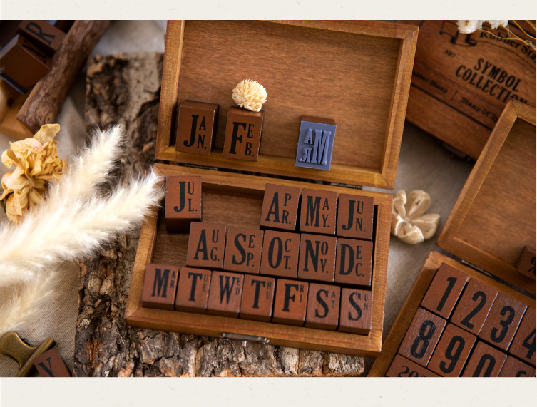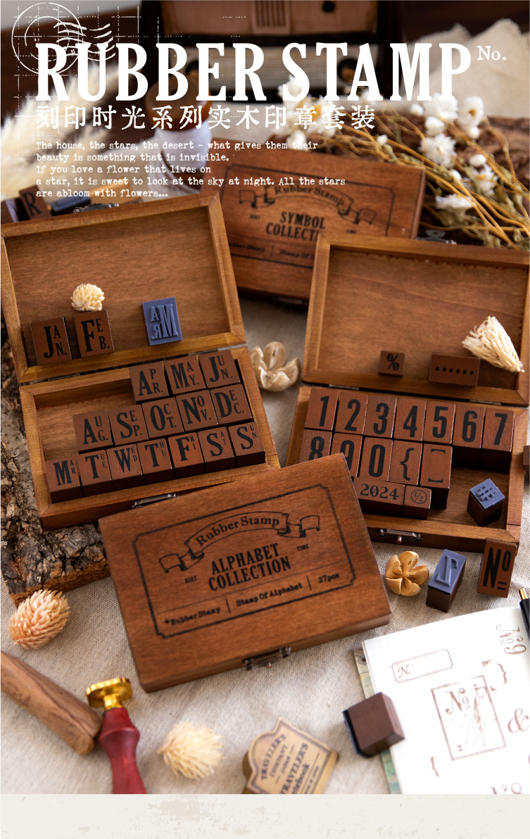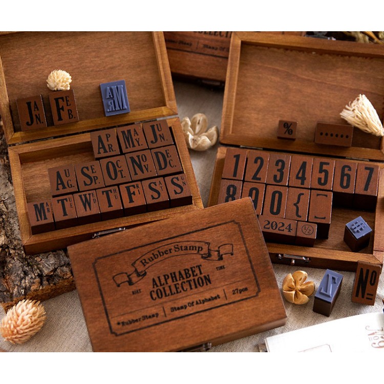 ست مهر چوبی حروف و اعداد انگلیسی