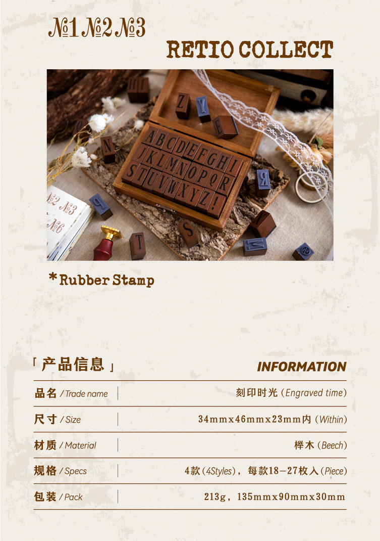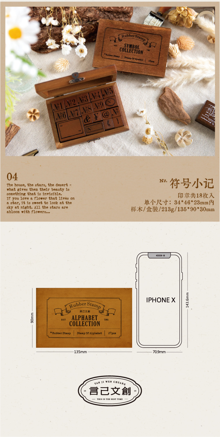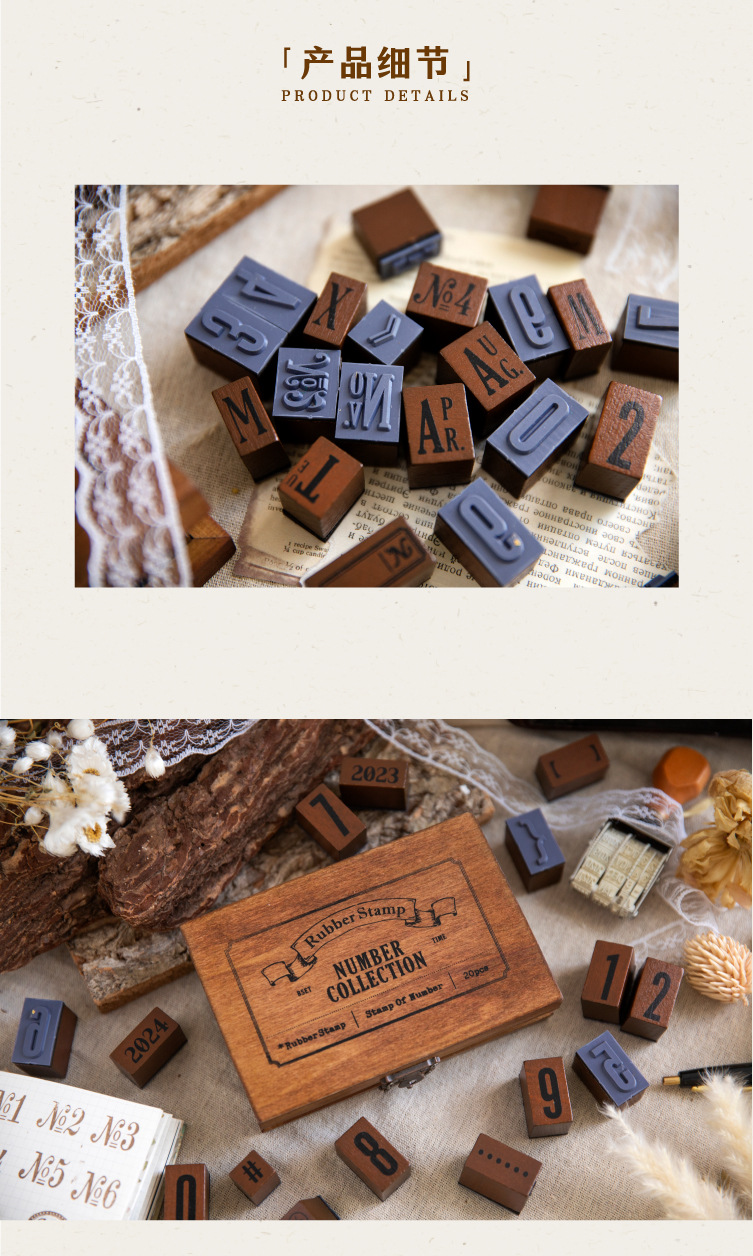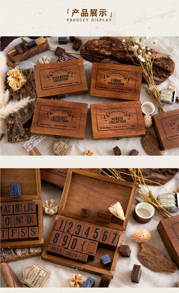 ست مهر چوبی حروف و اعداد انگلیسی