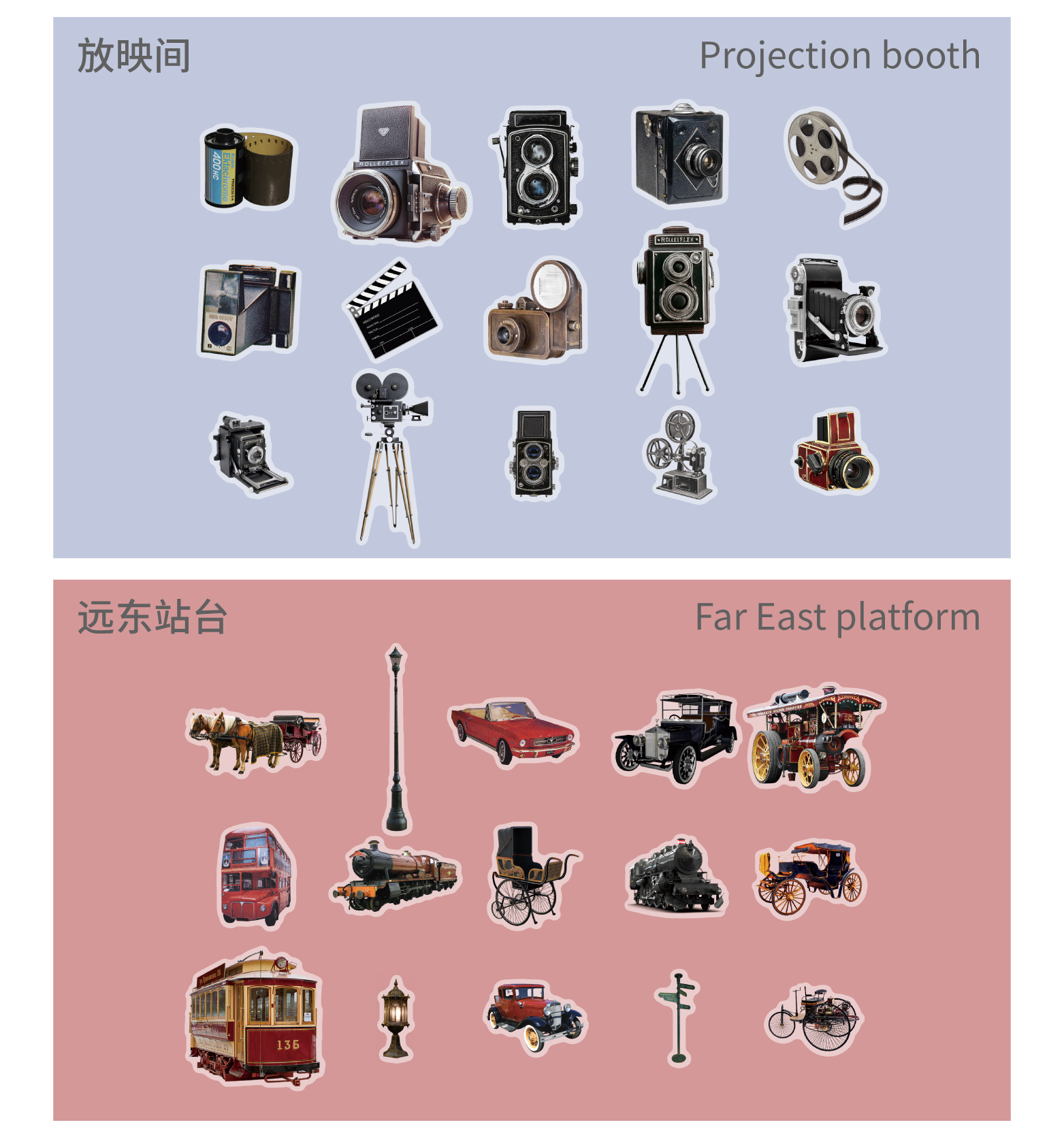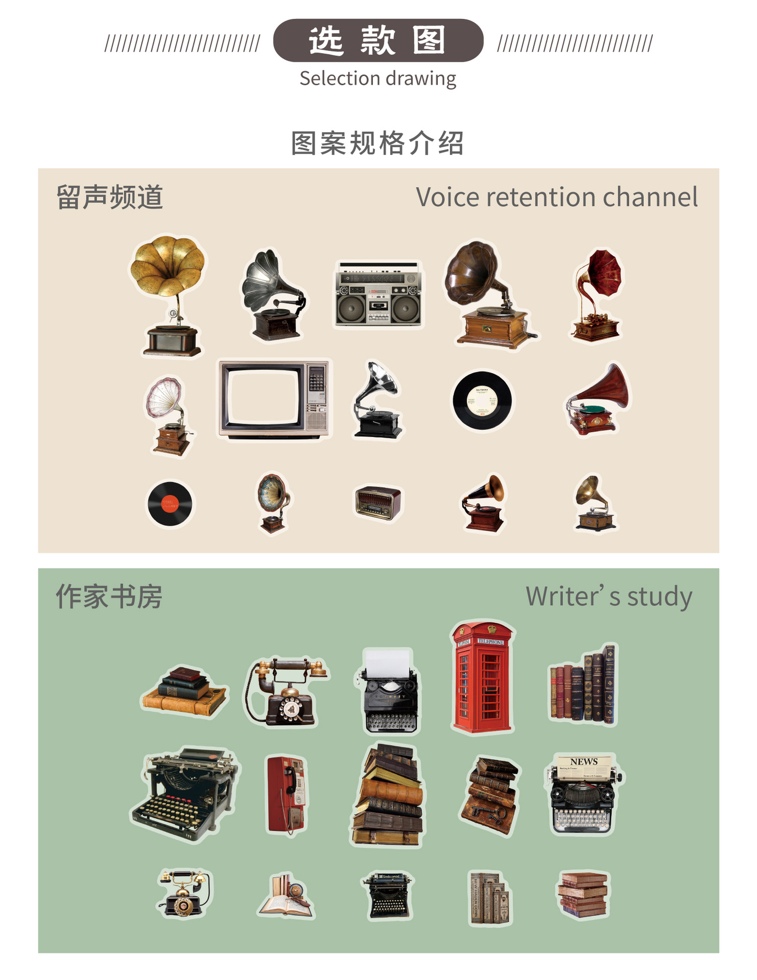 ست استیکر موزه وسایل قدیمی