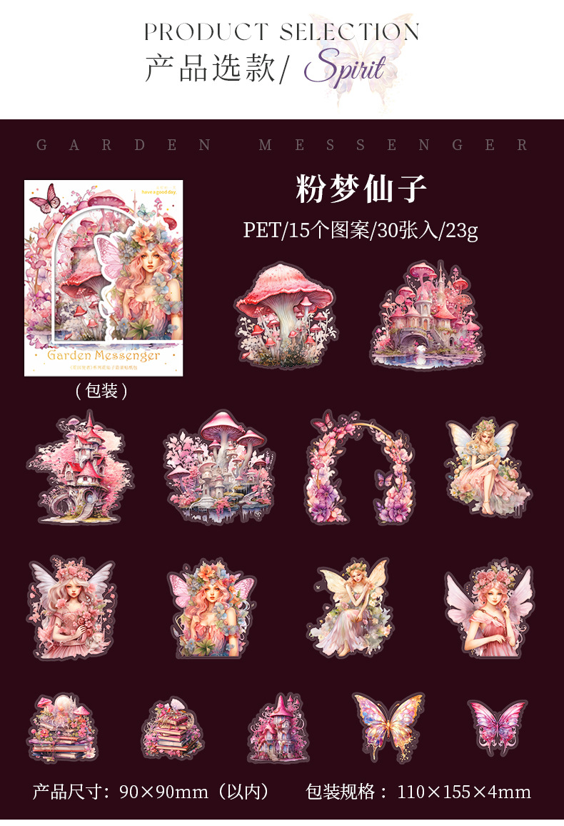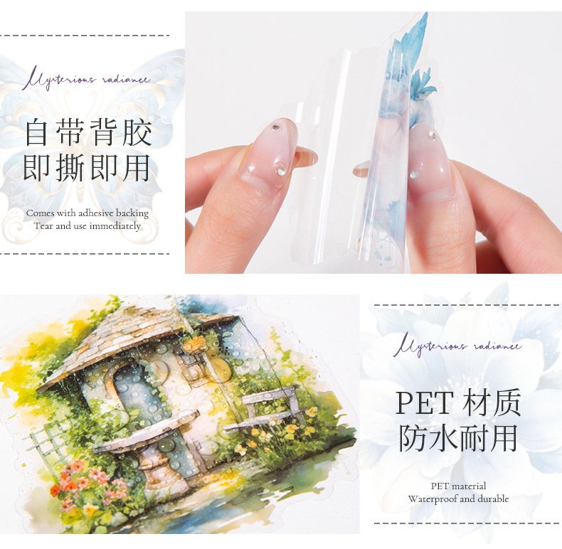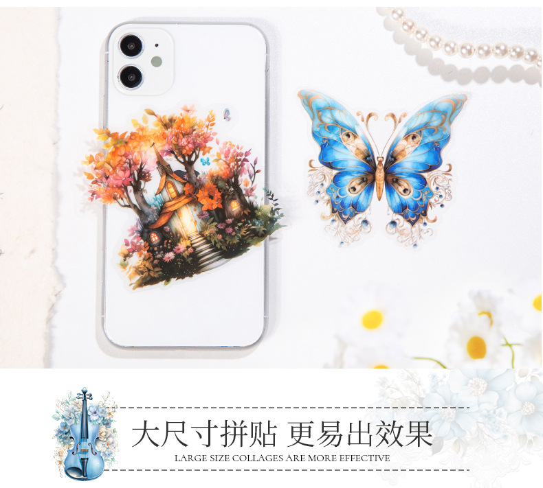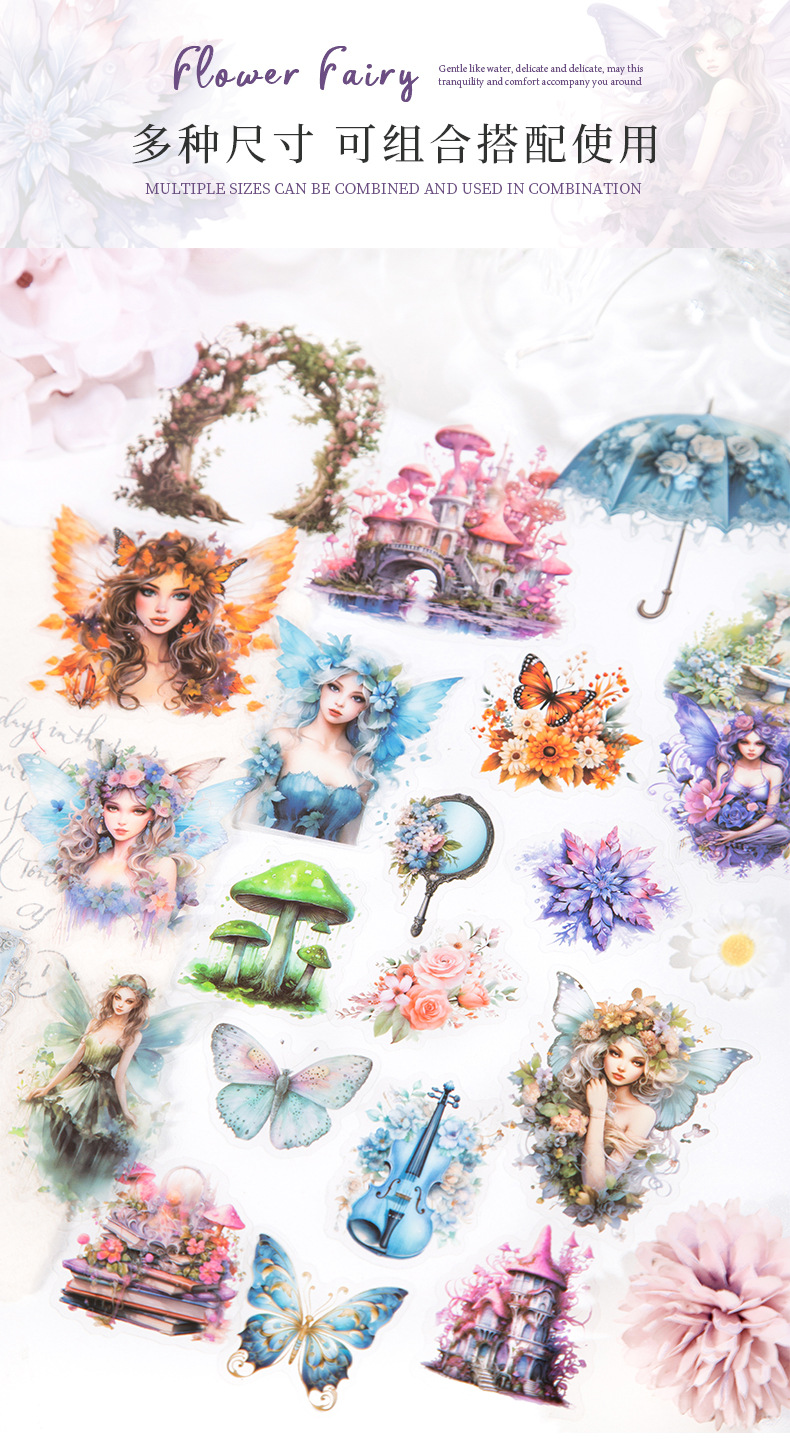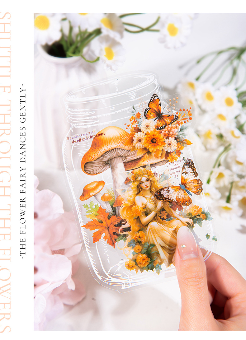 ست استیکر شفاف طرح دختر و شهر گل ها