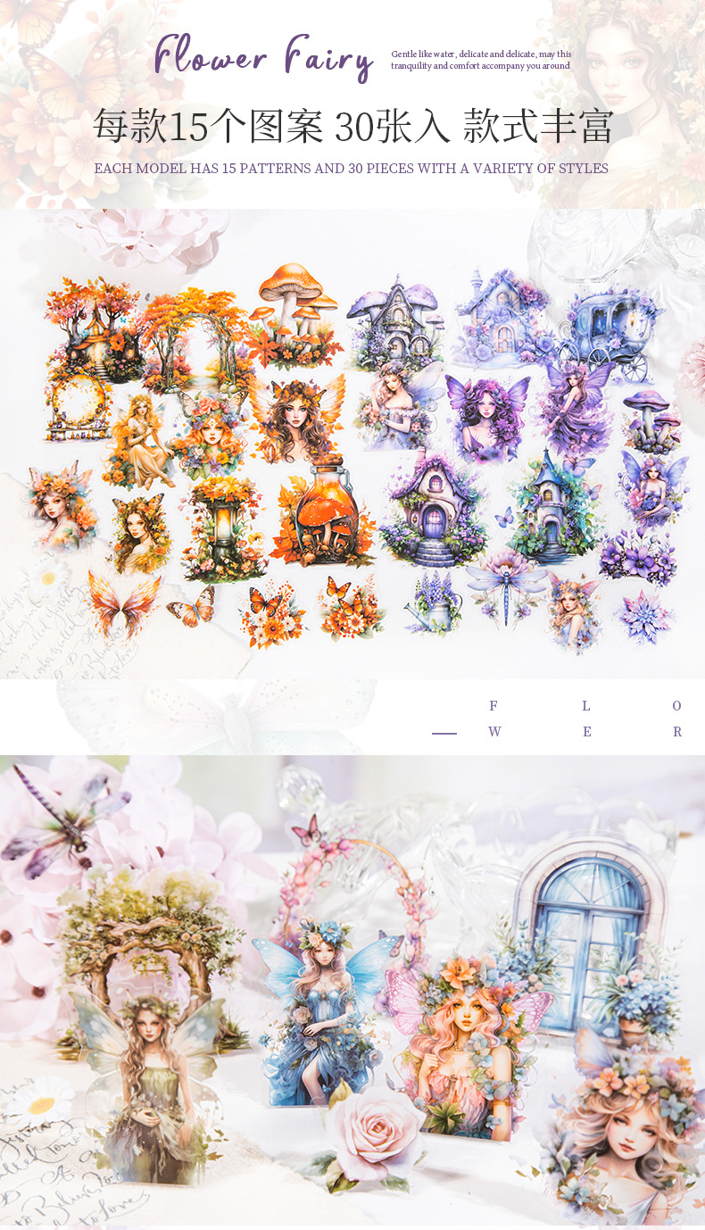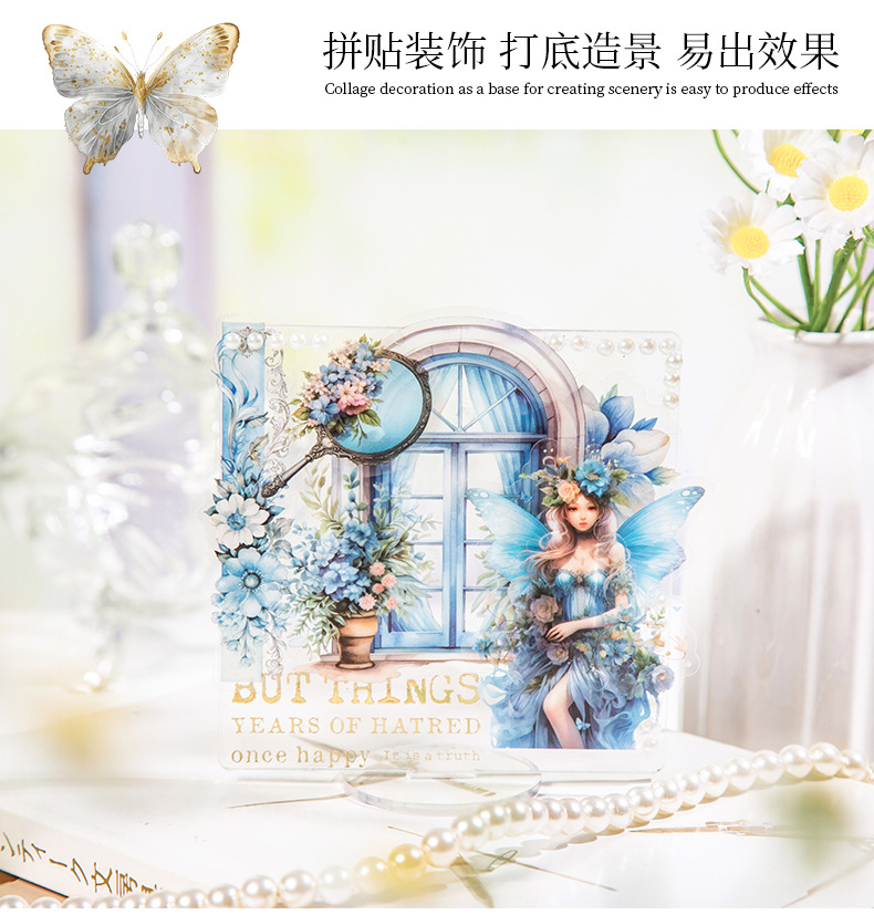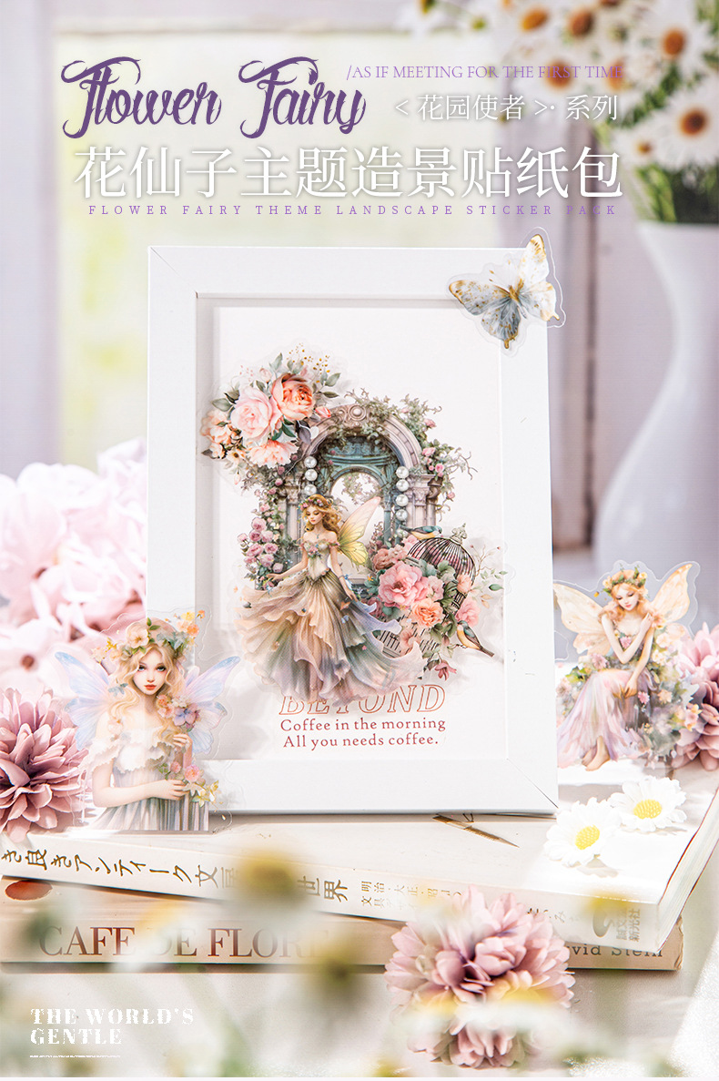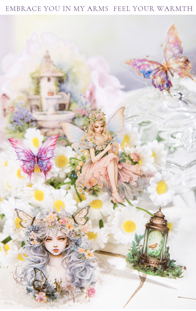 ست استیکر شفاف طرح دختر و شهر گل ها