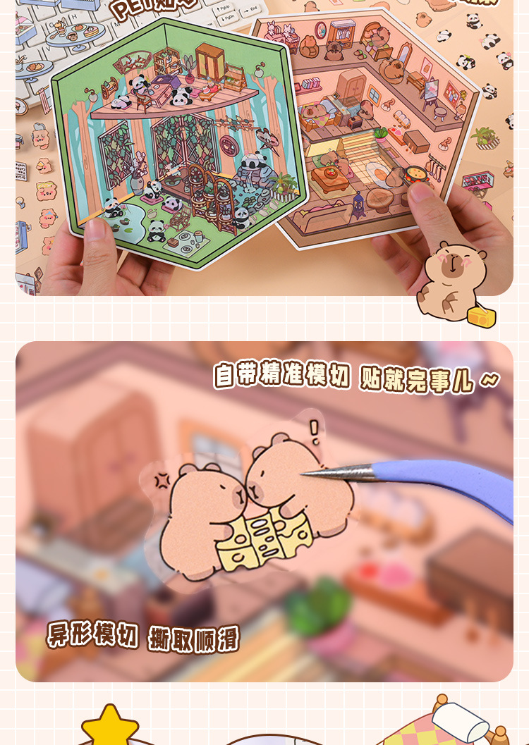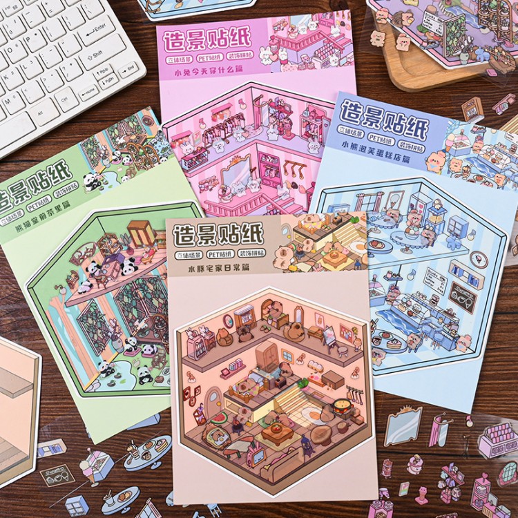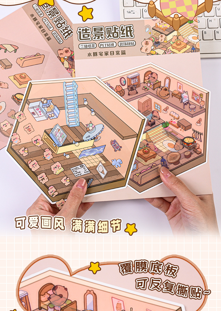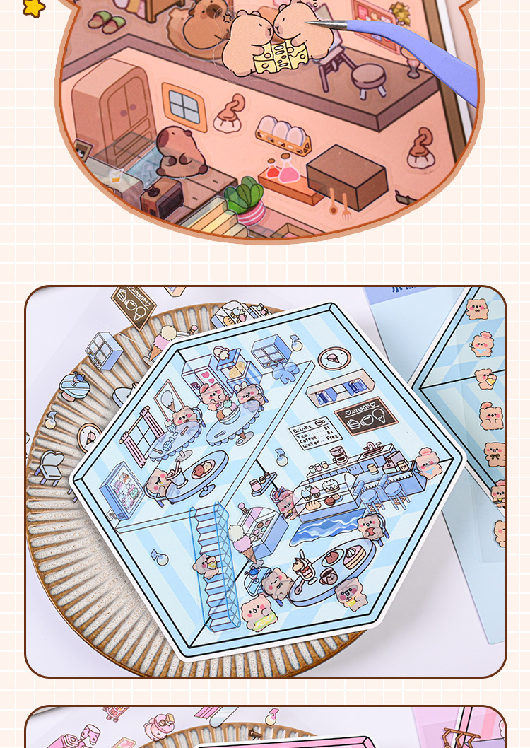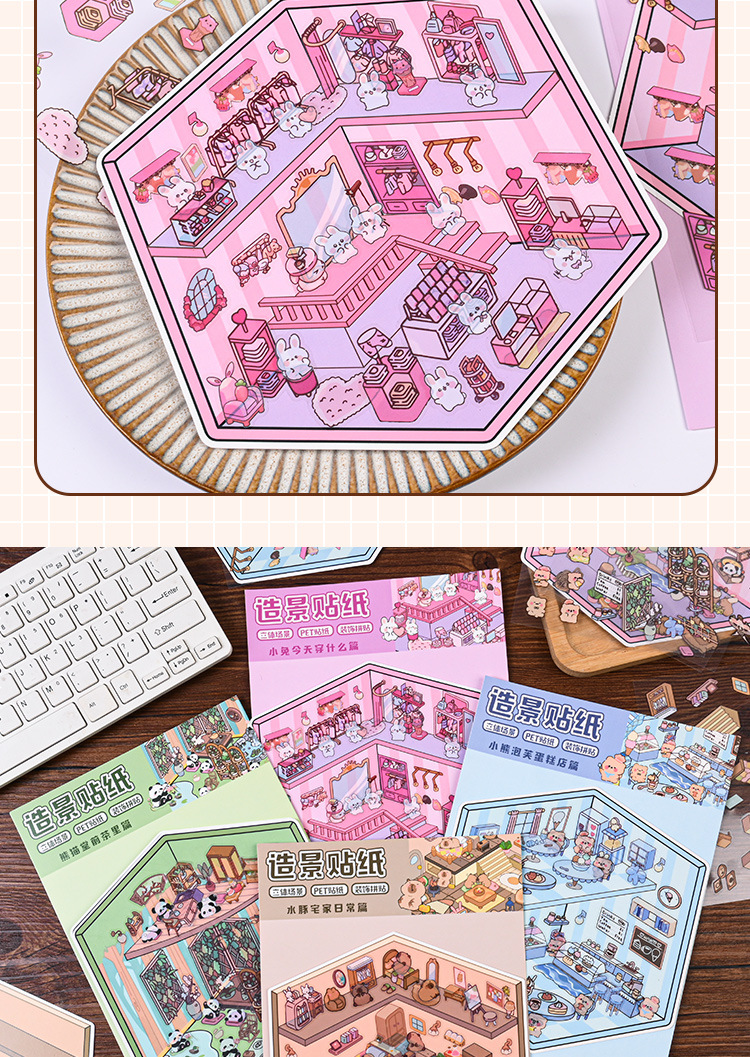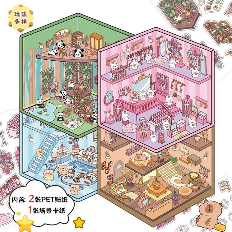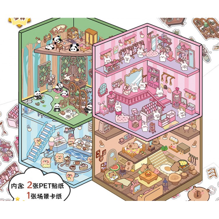 چه طور با چیدن قطعه های پازل، یک طرح رو میسازید، این پک های استیکر هم مشابه یه جور پازله.با قرار دادن استیکرها در جای مناسب می تونید یک خونه، مغازه، رستوران ، پارک و یا
