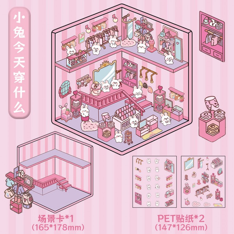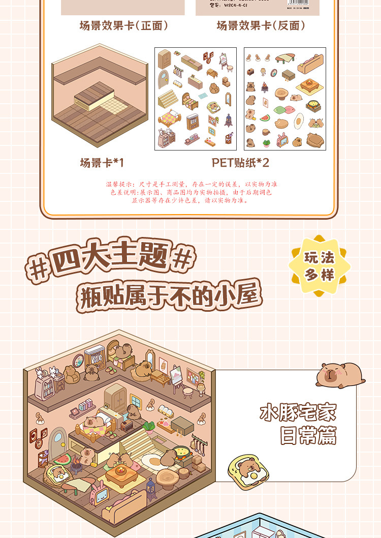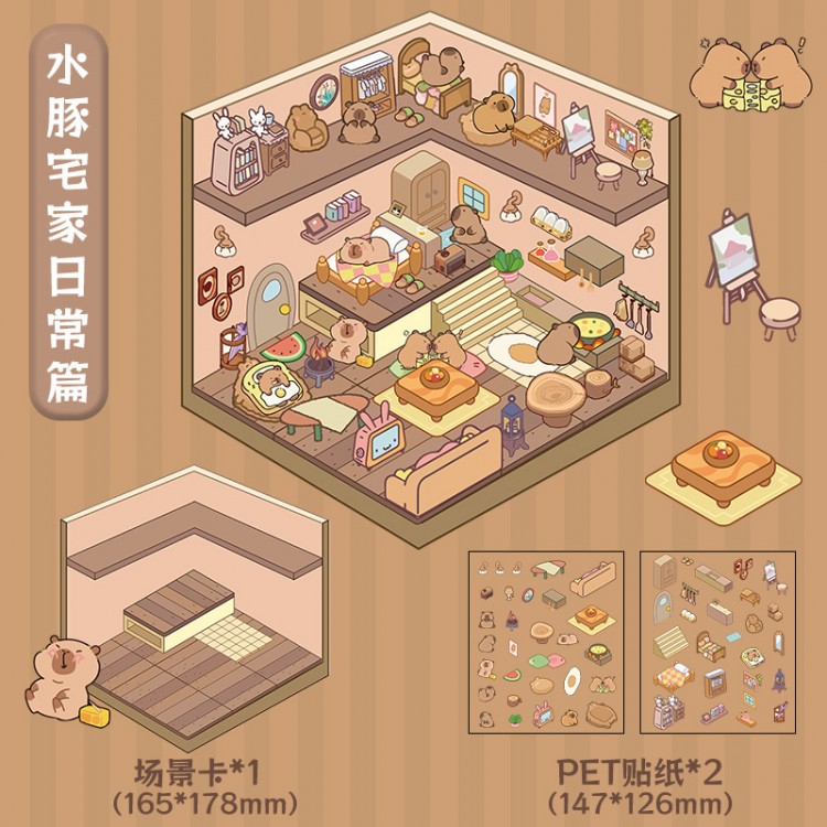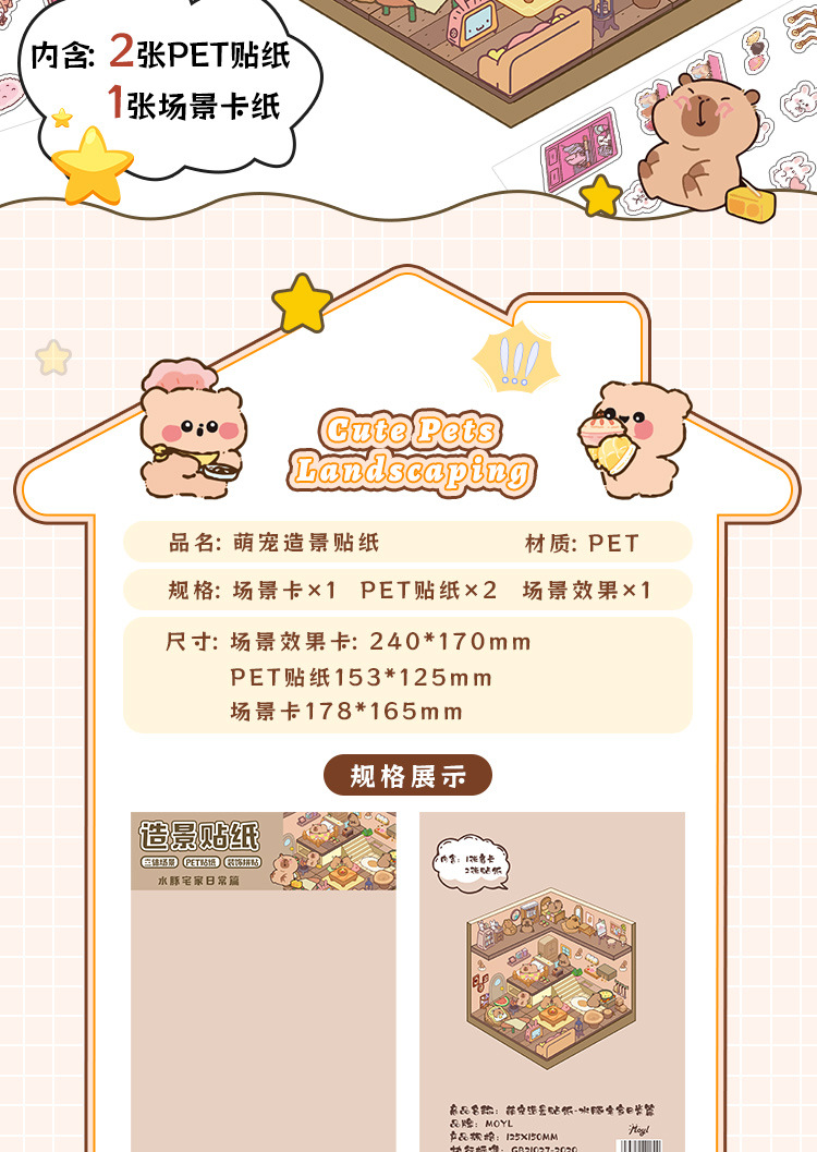 شامل دو برگ استیکر به ابعاد 15.3cm x 12.5cm و یک عدد ماکت