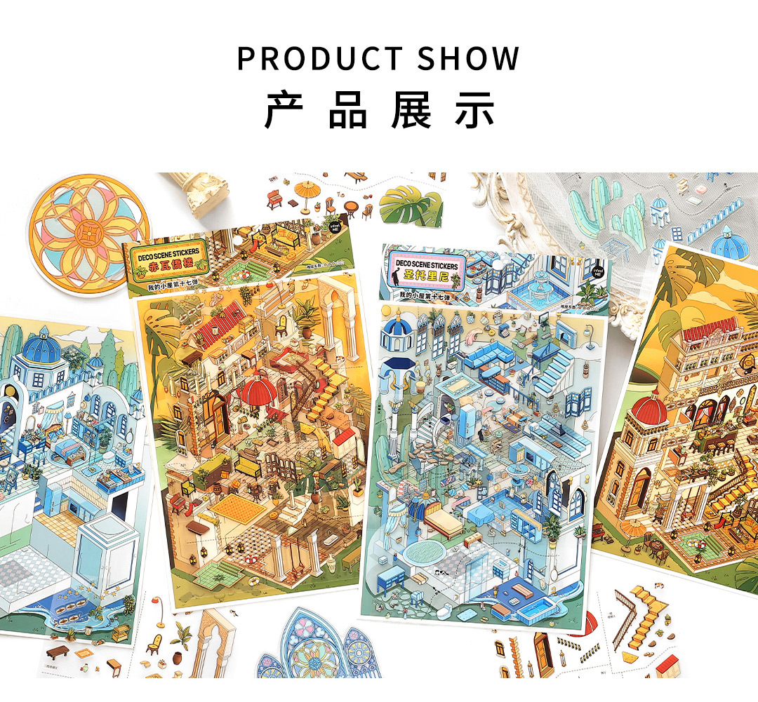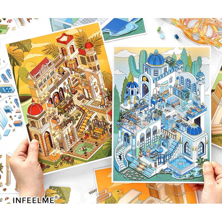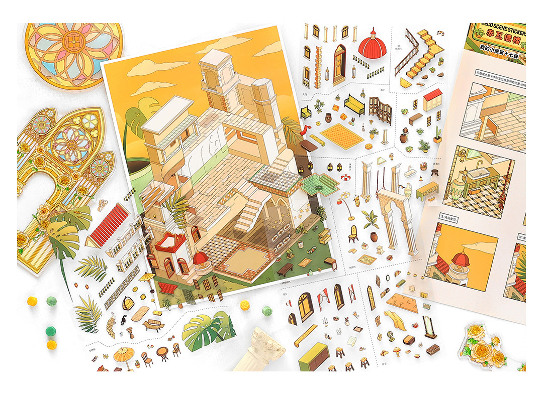چه طور با چیدن قطعه های پازل، یک طرح رو میسازید، این پک های استیکر هم مشابه یه جور پازله.با قرار دادن استیکرها در جای مناسب می تونید یک خونه، مغازه، رستوران ، پارک و یا هر طرح دیگه ای که تهیه می کنید رو با تمام جزئیات بسازید. به کوچکترین موارد در این استیکرها توجه شده و میتونید با یک کار هنری لذت بخش و زیبا خودتون رو سرگرم کنید ...