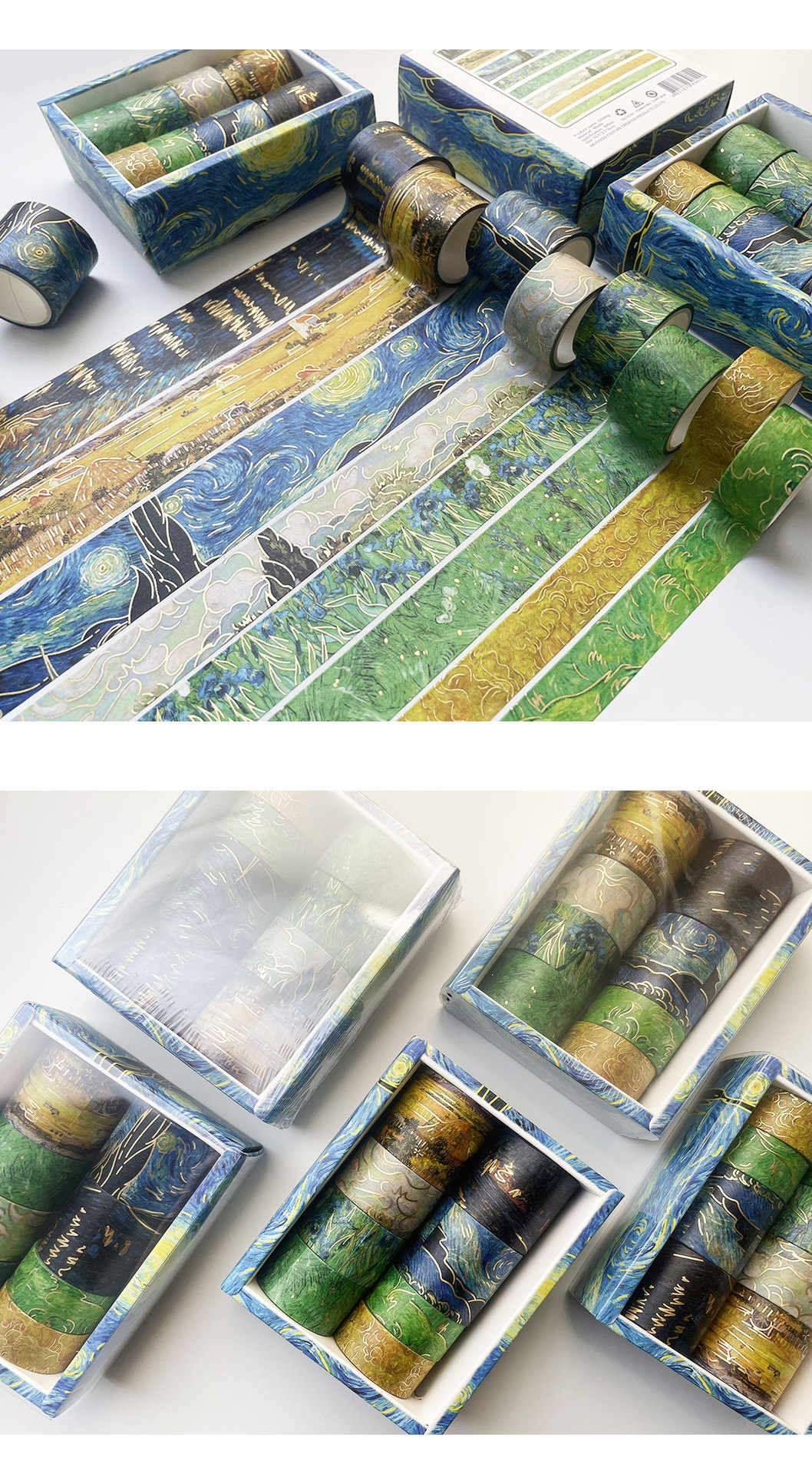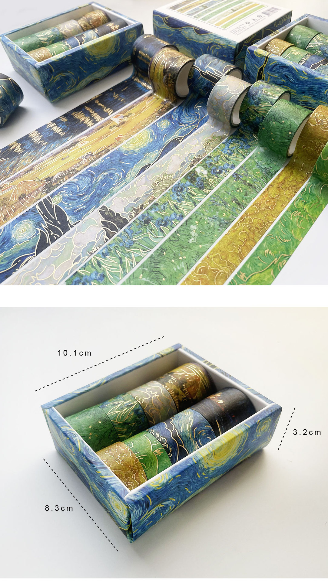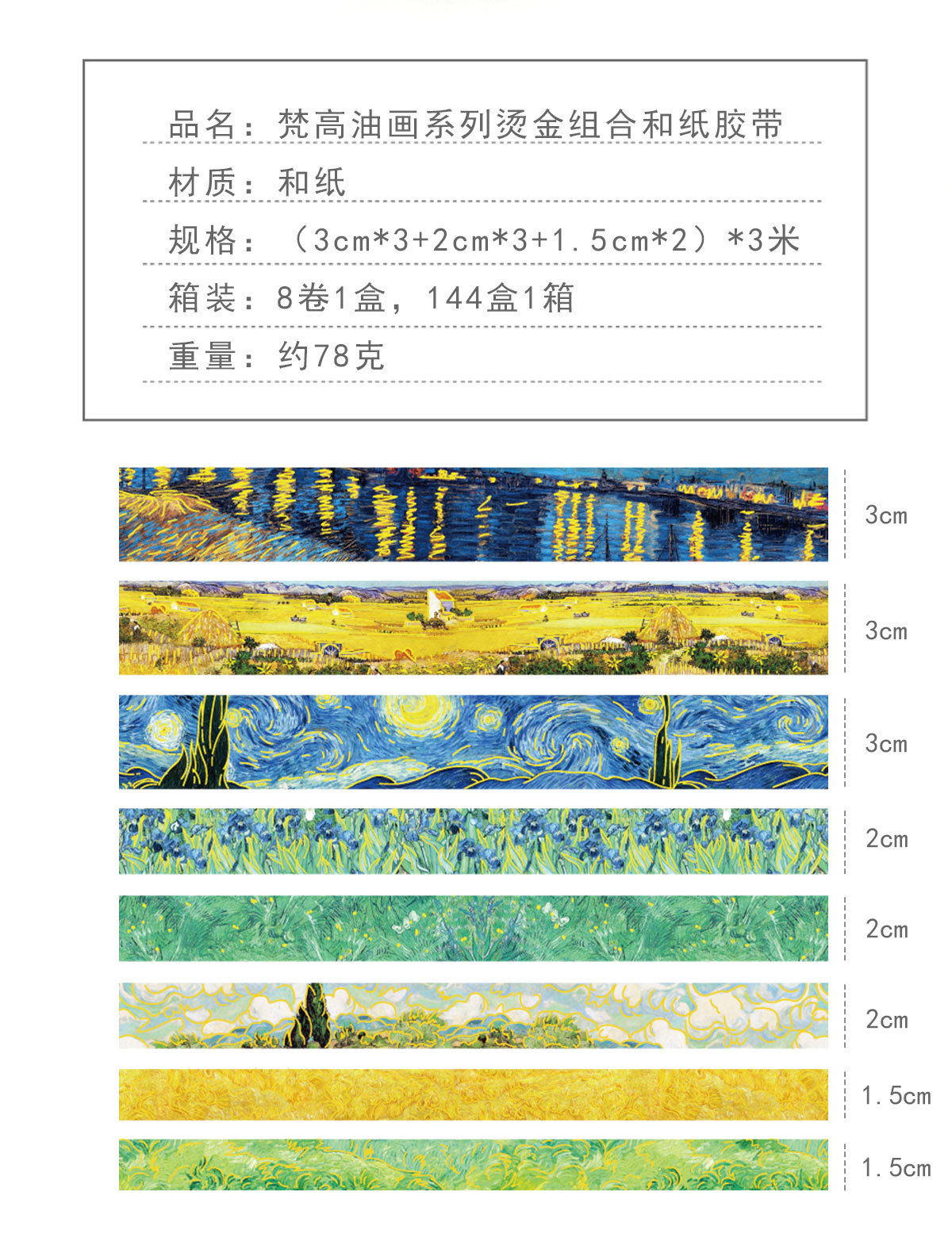 این مجموعه شامل 8 چسب واشی هر کدام به طول 3 متر و در عرض های 3cm(سه عدد) و 2cm(سه عدد) و 1/5cm(دو عدد)