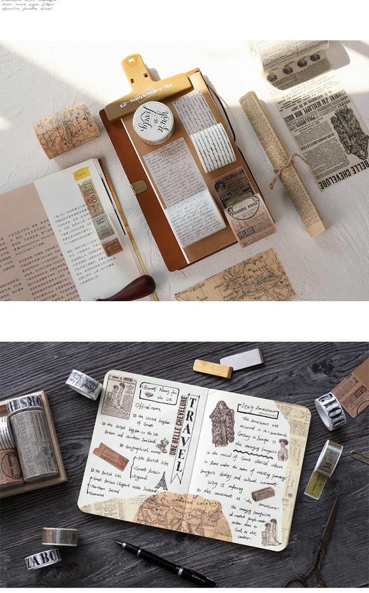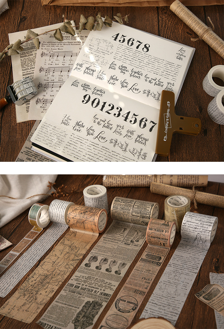 شامل طرح های روزنامه، نامه، دست نوشته، آگهی، بلیط های کاغذی، نقشه جهان و ...