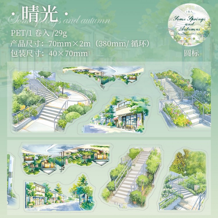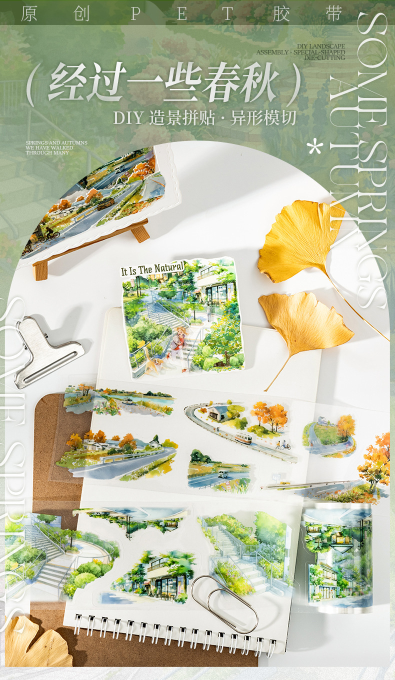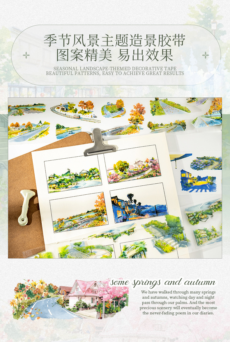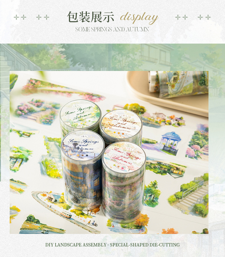 Files shared via the network disk: 4 original seasonal landscape-themed PET tapes from the "After Some Spring and Autumn" series