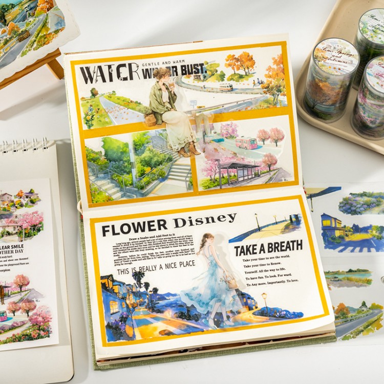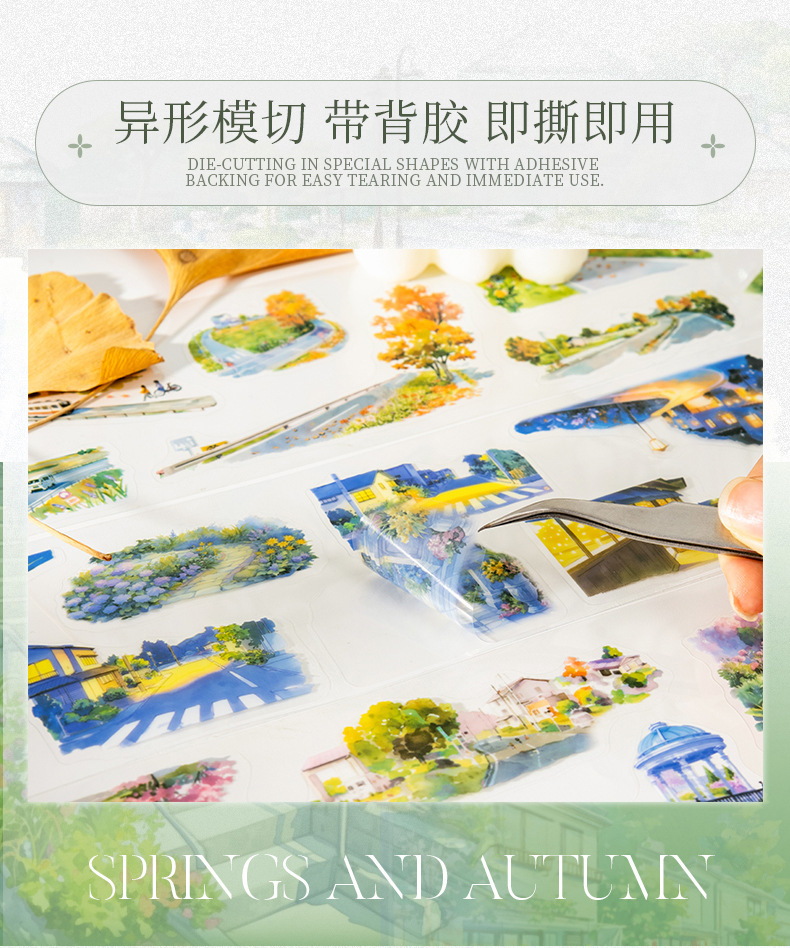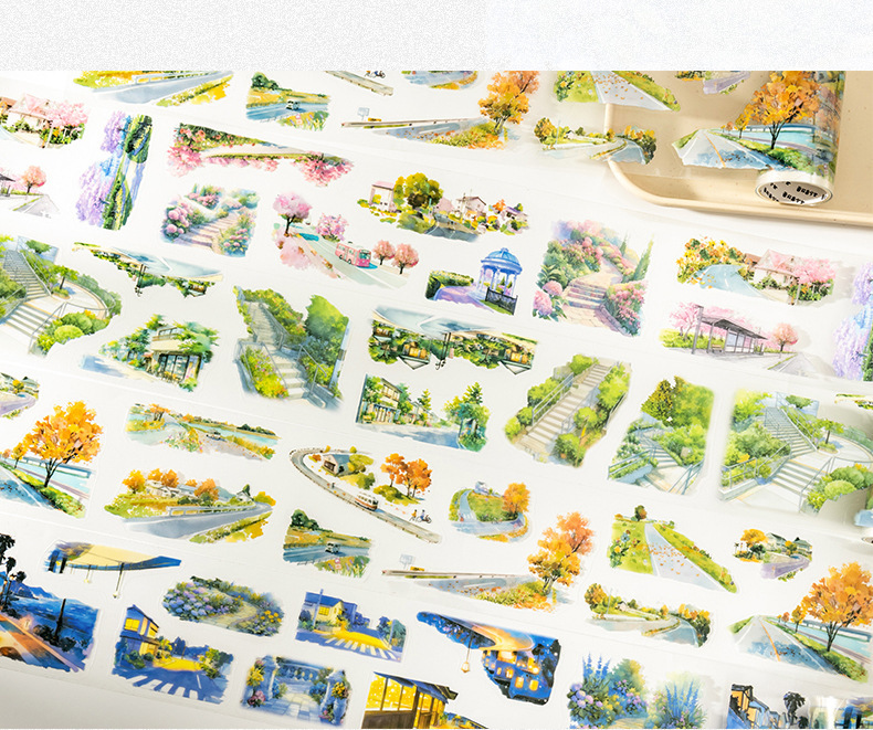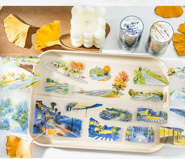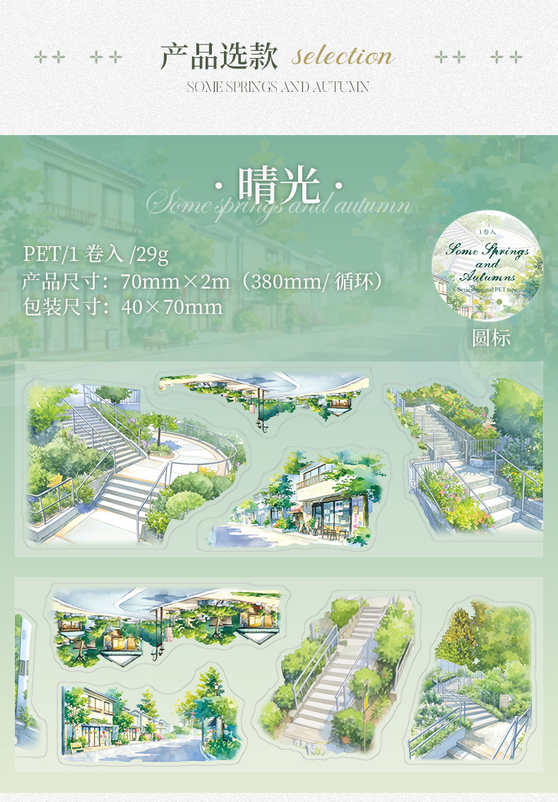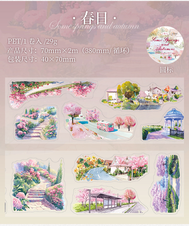 Files shared via the network disk: 4 original seasonal landscape-themed PET tapes from the "After Some Spring and Autumn" series